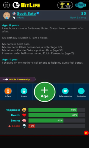 生命模拟器安卓汉化版是一款以文字叙事为核心的模拟人生手游,采用极简视觉风格呈现从出生到终老的全生命周期。玩家将经历婴儿啼哭、青春抉择、中年转折等关键节点,每个选择都会触发蝴蝶效应般的连锁反应,父母背景设定、兄弟姐妹关系网以及随机事件共同编织出独特的人生轨迹。
