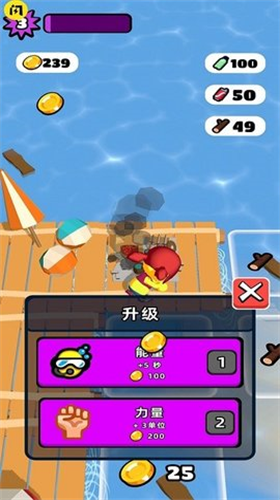 2、防御体系:升级加固木筏结构,制作鱼叉炮台应对鲨鱼突袭