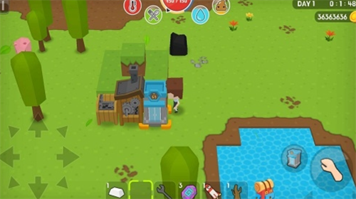 2、自由建造系统支持200+建筑模块,从简易木屋到自动化农场皆可自主设计