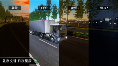 游戏独创动态天气系统,雨雪天气会影响车辆制动性能,大雾环境将降低可视距离,考验玩家应对复杂路况的能力。智能交规系统实时监测驾驶行为,对超速变道、疲劳驾驶等行为进行模拟处罚,连续获得五星安全评价可解锁隐藏版丝绸之路特别路线。经济系统支持组建车队、扩建车库,通过合理调度提升运输效率。