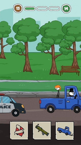 美术团队采用动态光影与粒子特效增强场景表现力,火柴人角色通过细腻的动作捕捉展现丰富情感。关卡设计中融入物理引擎特性,物体间的真实交互让解谜过程更具沉浸感。独创的「思维加速」系统允许玩家暂停时间观察环境细节,为复杂谜题提供突破契机。