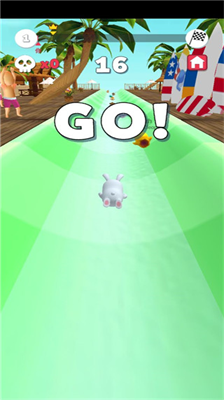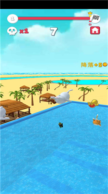 1、竞速模式:在八人赛道中灵活闪避浮球、水炮等障碍物,争夺冠军奖杯