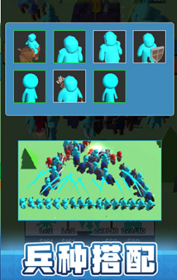 游戏采用即时战略框架,玩家通过不同绘画手势可召唤对应作战单位:圆形轨迹可激活陨石天降,波浪线触发魔法护盾,三角形符号召唤重装骑士。每种手势对应20余种战术单位,配合军种升级系统,可组建超过200种战术组合。