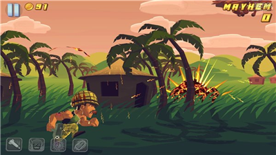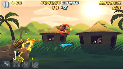 视觉表现采用多层视差滚动技术,前景作战单位与背景战争硝烟形成强烈纵深对比。爆炸特效运用粒子物理引擎,破片飞溅轨迹完全遵循真实动力学模型。角色受击时会有部位破坏反馈,精确命中头部可触发特写镜头。