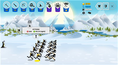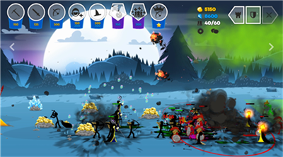 火柴人战争3战略部署版延续经典火柴人题材精髓,采用双塔攻防核心机制。玩家需运用策略指挥矿工采集金矿,通过黄金资源调度剑士、矛兵、巫师等多维兵种展开军团作战。游戏创新加入动态成长体系,通过战役积累强化战士属性,逐步解锁巨人等特殊作战单位。特色兵种数值设定分明,例如剑士侧重机动突袭,巫师具备控场能力,兵种克制关系构成深度策略体验。