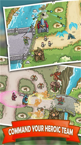 游戏内嵌物理与魔法双重伤害体系,30+敌军单位携带专属技能组,要求玩家精准调配冰霜减速、烈焰溅射、闪电链等元素效果。士兵指挥系统支持实时阵型调整,卡通渲染的短兵相接场景展现独特战场美学。