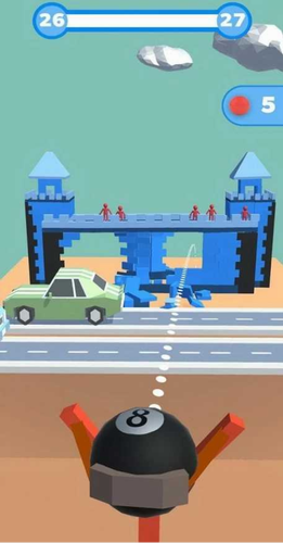 1、通过拖拽蓄力控制弹道轨迹,需预判建筑结构的物理承重点