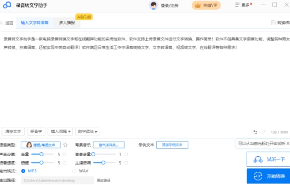 创新集成文字语音双向转换系统,具备高自然度的语音合成能力。支持个性化音色选择与语速调节,满足有声读物制作、多媒体课件开发等专业需求。