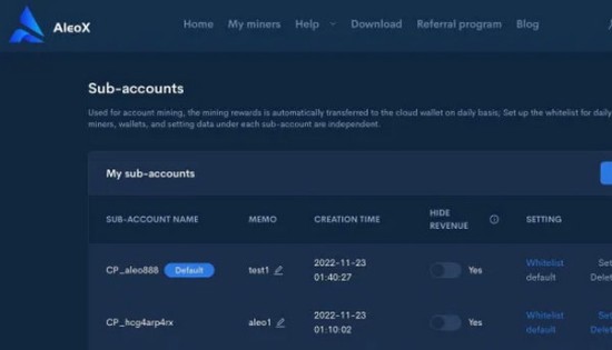 在AleoX矿池正式开启挖矿前,需预先建立专属子账户体系。矿池系统会自动为注册用户分配初始子账户,通过导航栏进入「我的矿工」界面即可查看系统生成的默认子账户名称。建议用户根据设备规模创建多个子账户,便于后续多设备算力管理。