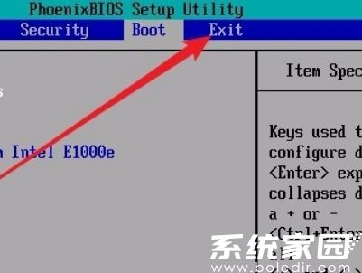 5、完成排序后切换至Exit功能模块,准备保存配置变更。