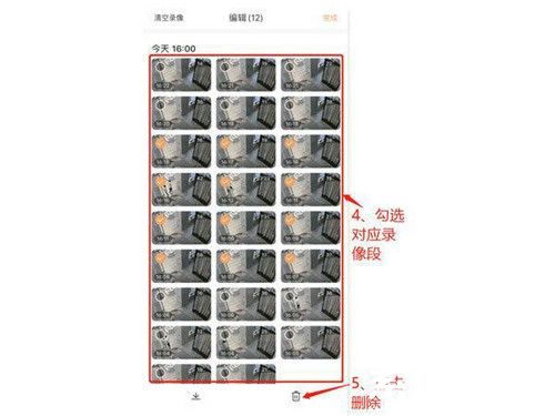 3、系统会以时间区块方式展示所有存储记录,每个时段左侧设有方形选择框。建议通过滑动屏幕逐段检查,勾选需要移除的录像片段。特别提醒:长按时间轴可快速选择连续时段。确认选择无误后,点击右下角醒目的红色删除图标,系统将弹出二次确认对话框确保操作准确性。