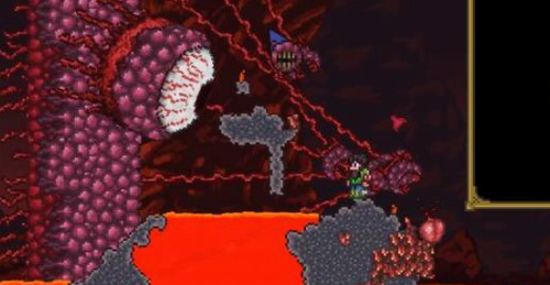 3、事件触发机制详解:当巫毒娃娃完全沉入岩浆后,系统将强制处决向导NPC并立即生成横向移动的血肉墙BOSS。此时建议提前搭建长约500格的平坦战斗平台,配备熔岩免疫装备与远程武器,确保战斗开始时处于屏幕最左端以获得战略优势。