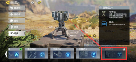 在防御型芯片分类中定位【哨兵】序列,此时系统会展示该系列所有可装配组件。若已满足解锁条件,导弹芯片的图标会呈现高亮状态,并标注「已激活」标识。值得注意的是,部分高阶芯片需要达成特定战场成就方能解锁。