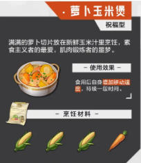将魔法萝卜与黄金玉米文火慢炖12小时,汤汁蕴含风元素精华。增益效果期间受击不会中断加速状态,适合需要持续走位的战斗场景。