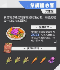面体中注入雷晶粉末,食用后武器将覆盖电磁力场。电属性转化期间攻击有概率触发连锁电弧,推荐用于水系敌人聚集的副本。