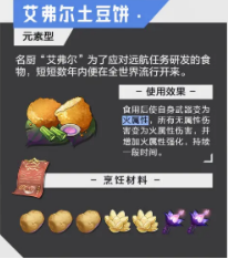 火山灰烤制的特殊土豆饼,火属性转化可破除部分敌人的寒冰护甲,在特定剧情关卡中具有关键作用。