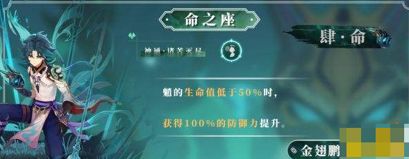 1、生命值低于50%触发的防御加成,在深境螺旋高压环境中具有一定保护作用。但作为主C定位,更推荐通过钟离护盾或治疗角色维持血线,该命座实战价值有待商榷