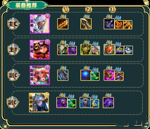 1. 主坦安妮应置于前排两侧,根据敌方主力输出位置调整站位方向,优先保护寒冰输出环境