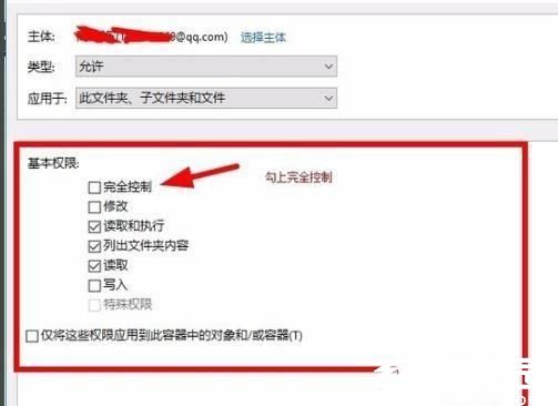 9、返回高级安全设置界面勾选「完全控制」权限