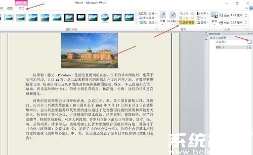 1、定位文档中可见的任意图片元素,双击激活图片编辑功能。在顶部导航栏会自动出现「图片工具」选项卡,点击右侧的「格式」功能面板。此处需注意区分图片与形状图形,仅真正插入的图片会触发工具面板显示。