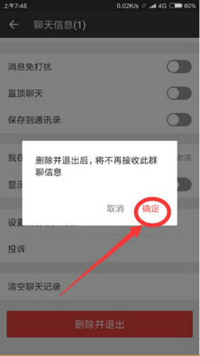第六步:触发删除并退出功能时,系统将弹出二次确认窗口。此时建议检查群文件是否已备份,该操作将同步清除所有聊天记录。
