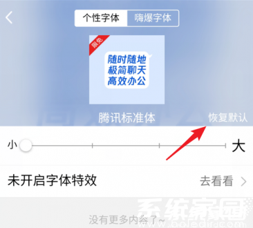 5. 在个人字体管理中心界面,系统会突出显示当前正在使用的字体样式。找到位于界面底部的「恢复默认」功能按钮,点击后需保持网络通畅以便系统及时同步设置。