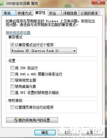 步骤2、进入兼容性配置界面后,勾选"以兼容模式运行此程序"复选框,建议选择Windows7系统兼容方案,最后点击确认保存参数设置;