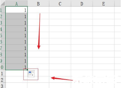 三、按住鼠标左键垂直向下拖动至目标行数,此时所有单元格会临时显示相同数值