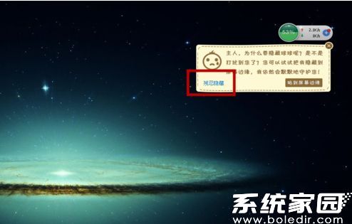 3. 确认隐藏操作:软件会弹出二次确认对话框,以趣味化的文字提示挽留用户。此时需要选择「残忍隐藏」按钮完成最终设置,操作生效后桌面将立即清除该悬浮控件。
