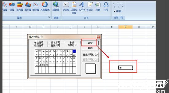 5. 在符号列表中找到±符号并双击完成插入
