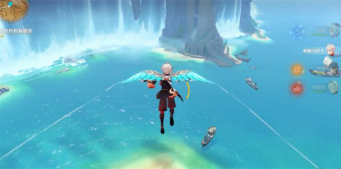 4.完成场景交互后,需从悬崖边缘实施精准降落操作。推荐切换具备下落攻击减伤效果的角色,在下降过程中注意观察水面波纹特效,该特效标记着浪船锚点的精确位置。