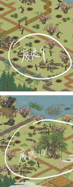 1、开启任务需消耗10枚铜钱激活建筑权限,进入宅院后首要目标是完成植被修复。将庭院内所有种植坑位栽满桃树(共计需18株),同步清理两处坍塌遗迹(具体方位参照图示)。完成基础建设后将解锁景观园林与酿酒工坊,后者正是后续任务的核心场所。
