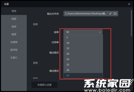 在视频编码设置模块,帧率参数直接影响画面流畅度。常规演示视频建议选择25-30fps,若需录制高速游戏画面可将帧率提升至50fps,此设置需显卡性能支持。