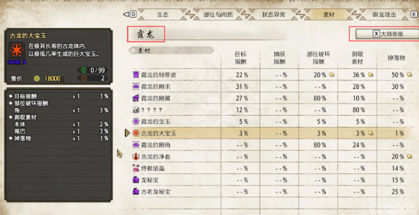 霞龙的素材获取机制与钢龙保持高度一致,猎人需重点针对头部进行破坏以提升获取效率。建议携带具有部位破坏加成的装备技能,战斗过程中优先使用大锤、斩击斧等易于破坏头部的武器类型,可有效提高3%的头部破坏奖励触发概率。