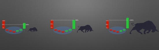 第二种典型看涨模式为吞噬形态,表现为阳线实体完全覆盖前日阴线。该形态直观展示多空力量逆转,若伴随成交量阶梯式增长,往往预示趋势性反转。
